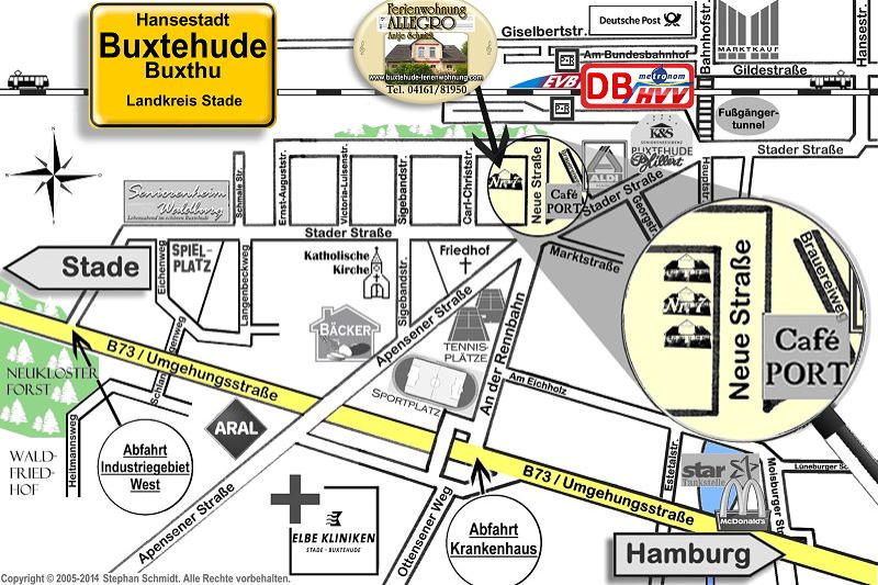 Sie kommen mit der Bahn?KeinProblem!IneinpaarMinutenerreichenSiesounsereFerienwohnung: VerlassenSiedasBahnhofsgebäudenachrechtsundunterquerenSienach 50mdieBahnliniedurchdenFussgängertunnel.FolgenSiederSTADER STRASSE(anderSeniorenresidenz&ALDIvorbei)biszumCAFÉPORT (großeKreuzung).BiegenSienunrechtsindieNEUESTRASSEein.Unser Haus ist das vorletzte auf der linken Seite.SiehabenvielGepäckundbrauchenetwasHilfe?GerneholenwirSie persönlichvomBahnhofab,wennmöglich.TeilenSieunshierzubitteIhre Ankunftzeit mit.